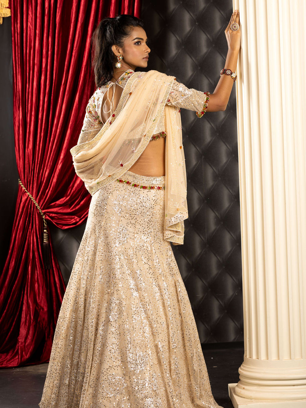 Skin-Colored Sequins & Thread Embroidered Net Reception Lehenga