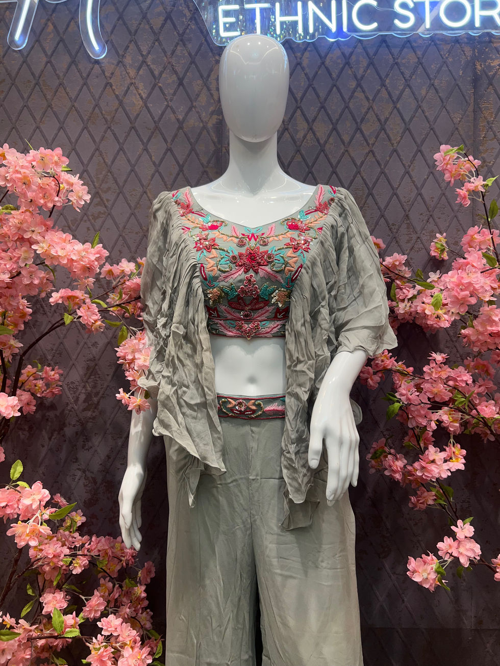 Sophisticated Grey 2-Piece Indo-Western with Exquisite Thread Work